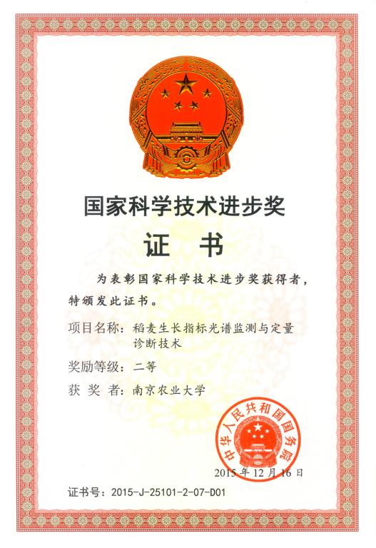 该研究已授权国家发明专利9项(另受理23项)、实用新型专利5项,登记国家计算机软件著作权16项;推广便携式作物生长监测诊断仪219台、农田感知节点280套;发表学术论文154篇(含SCI收录论文41篇,EI收录论文18篇),出版专著1部;培养研究生及博士后48名。该技术入选江苏省主要农作物2014~2015年“四主推”目录,自2009年以来在江苏、河南、江西、安徽、浙江、河北、湖南等稻麦生产区进行了示范应用,表现为明显的节氮(约7.5%)和增产(约5%)作用。据统计,近5年累计推广有效面积4920.21万亩,新增效益24.28亿元。