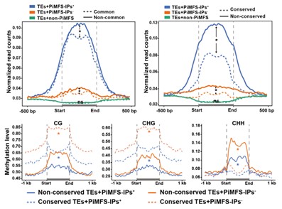 结合栽培稻亚种、野生稻转座子数据及DNA甲基化数据,本研究发现,活跃的转座子中形成i-motif结构的潜力较高,同时伴随着CG和CHG的低甲基化。这暗示着i-motif与DNA甲基化共同影响转座子的遗传稳定性。
