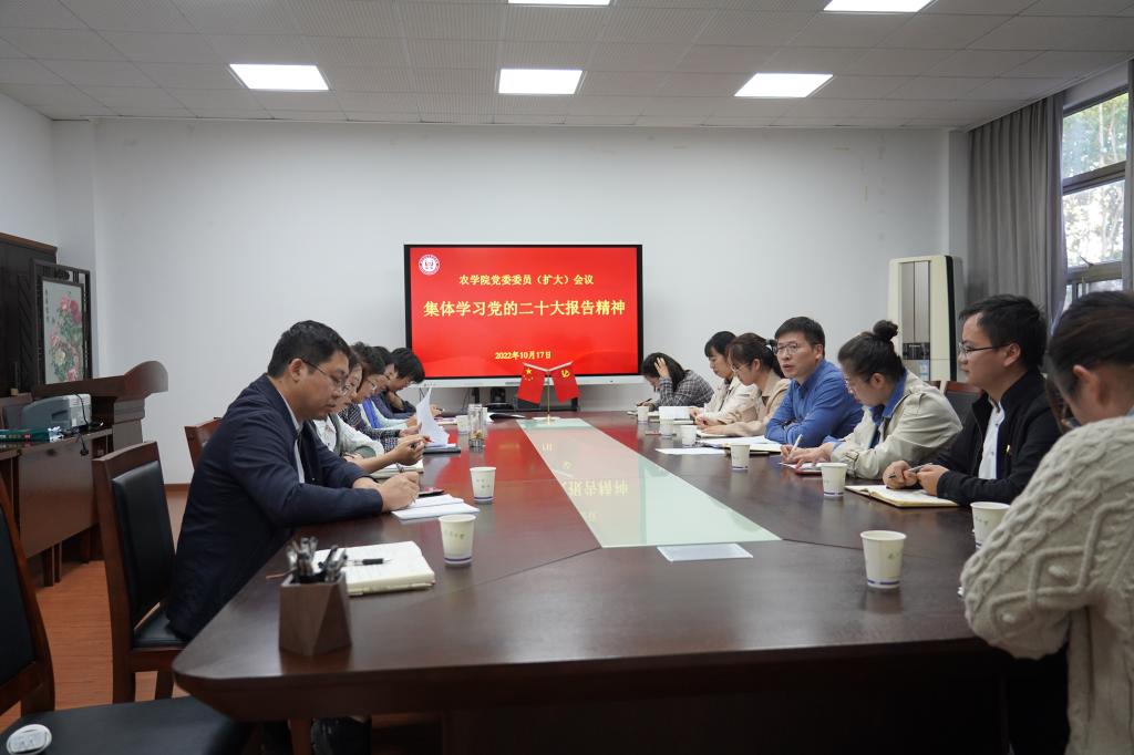 朱艳围绕习近平总书记在党的二十大上多次提到的有关“教育”“科技”“三农”方面的部署,带领党委委员一同领会报告精神。