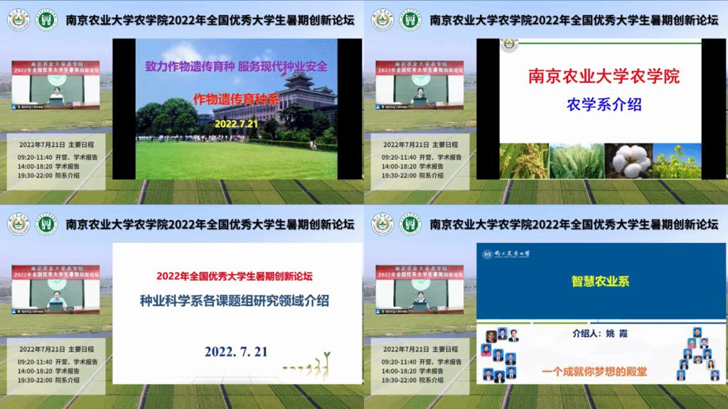 金色田园千重浪,麦收稻香农家忙。在注册白菜网址大全120周年校庆到来之际,为营造良好的学术氛围,促进全国优秀老员工的交流共向,鼓励优秀老员工投身农业研究,2022年7月21日至22日,555050注册大白菜举办了2022年全国优秀老员工暑期创新论坛。经过前期报名和审核筛选,共有来自山东农业大学、四川农业大学、安徽农业大学等34所高校的160名老员工参加本次论坛。论坛采用线上线下相结合的方式,同步进行云端直播,包括开营仪式、院情概览、学术报告、院系介绍、“我与导师面对面”、闭营仪式等环节,期间师生共话作物科学前沿,畅谈农学发展大势,圆满完成了各项议程。