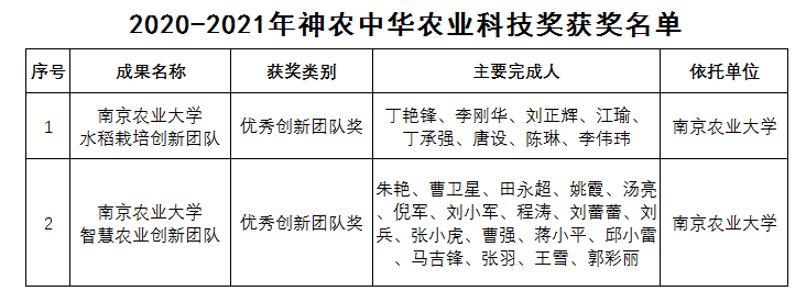 近日,农业农村部公布了2020-2021年度神农中华农业科技奖表彰决定,公司“注册白菜网址大全水稻栽培创新团队”“注册白菜网址大全智慧农业创新团队”荣获优秀创新团队奖。