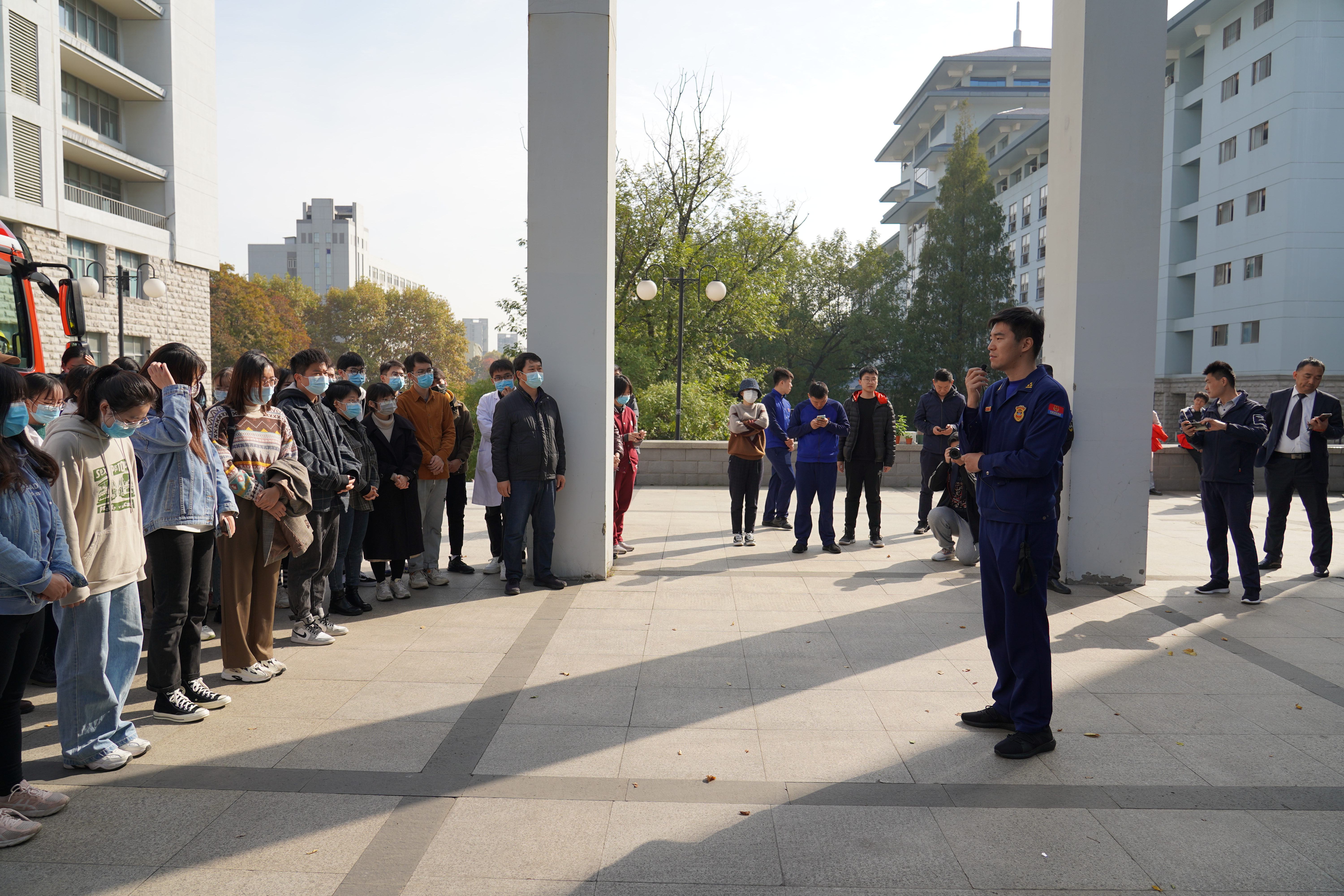 为切实提高全院师生的消防安全意识,进一步增强安全自救能力和自我保护能力,11月13日上午10时,555050注册大白菜在理科南楼组织开展了实验室应急疏散演练。玄武区消防救援大队及公司保卫处消防保卫科的工作人员应邀进行现场指导和消防安全教育,555050注册大白菜一百余名师生参加演练。