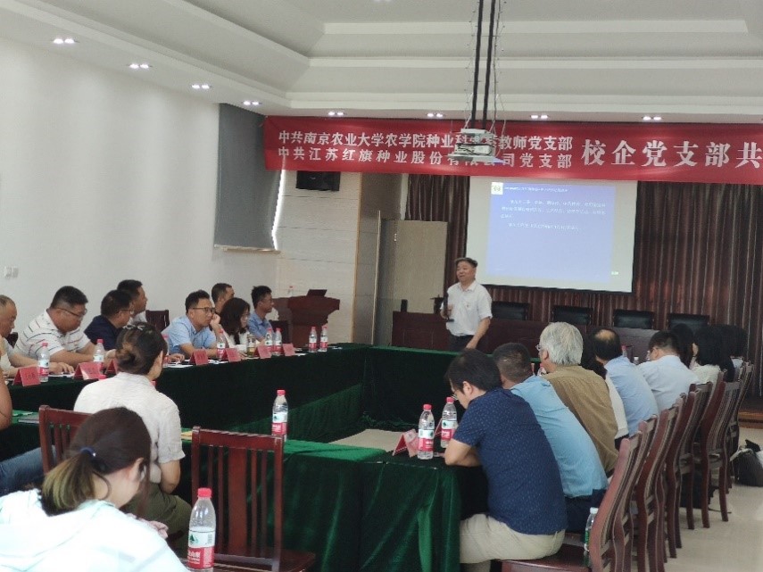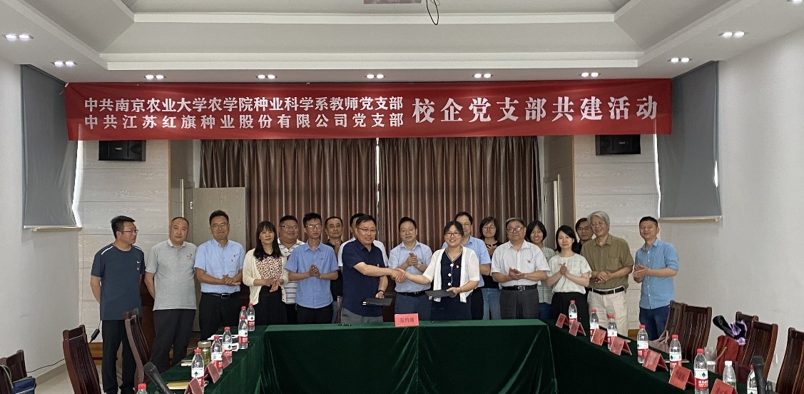 江苏红旗种业股份有限公司成立于2001年,是集品种选育、良种繁育、种子营销于一体的国有控股种子企业,同时也是“新三板”挂牌企业、国家高新技术企业、江苏省农业产业化重点龙头企业、江苏省种业骨干企业、江苏省农业科技型企业,中国种子协会信用评价“AAA”级企业。继2020年红旗种业与公司签订科研业务合作协议以来,此次双方在校企党支部共建方面进一步深入交流,拟在组织建设、种业科技合作研发、本科生实践教学基地建设、研究生工作站建设等方面深入合作,合力打造现代种业校企合作党支部共建标杆。此次活动也是公司种业科学系教师党支部和仲英作物种业创新中心“走进种业”系列特色活动之一,对于种业科学系和仲英作物种业创新中心将党建与业务工作双融合双促进具有重要推动作用。