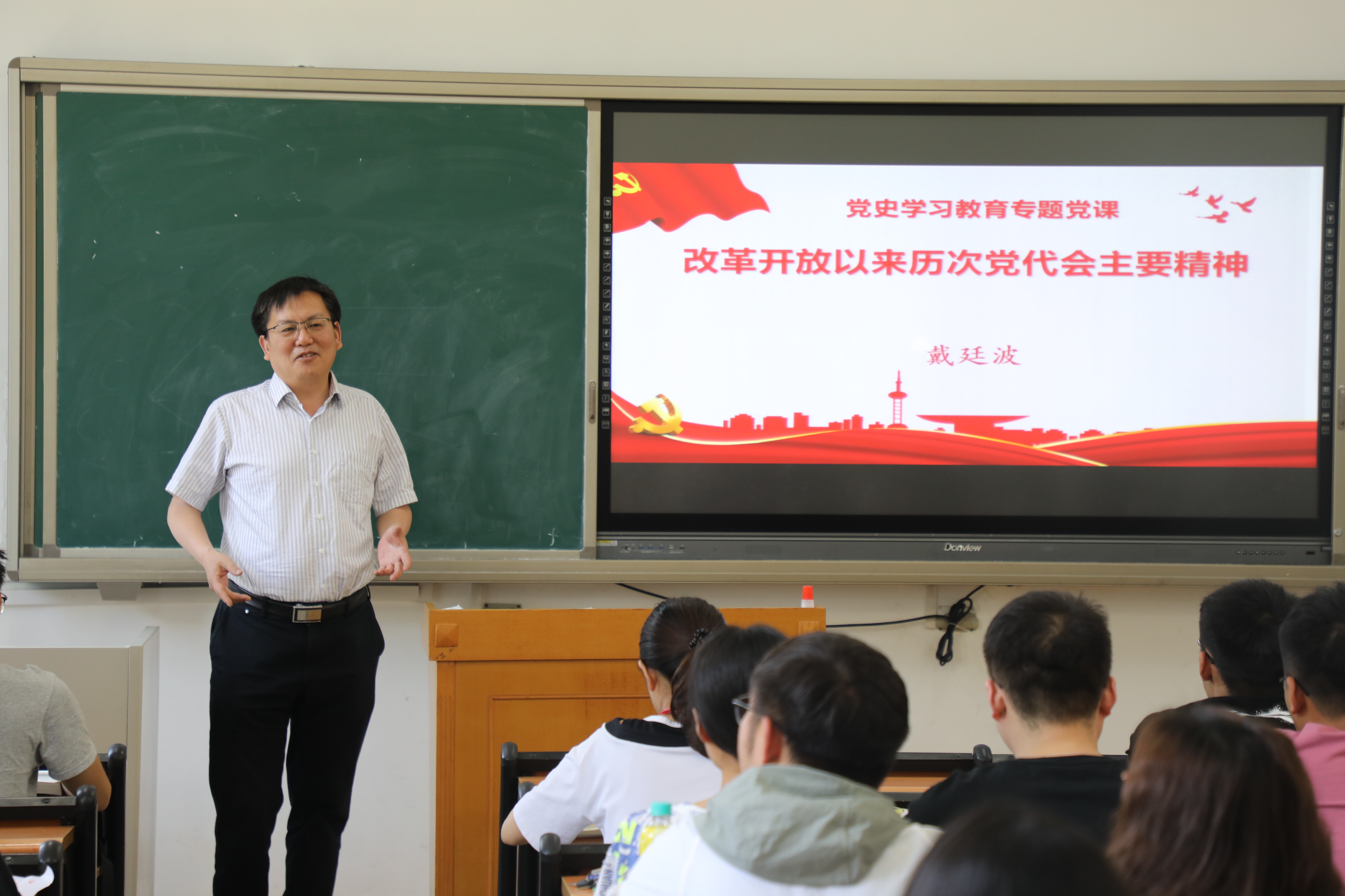 2021年6月23日下午,公司党委书记戴廷波在教学楼A102教室以《改革开放以来历次党代会主要精神》为主题讲授专题党课。555050注册大白菜新发展的员工党员及部分教师党员聆听了此次党课。