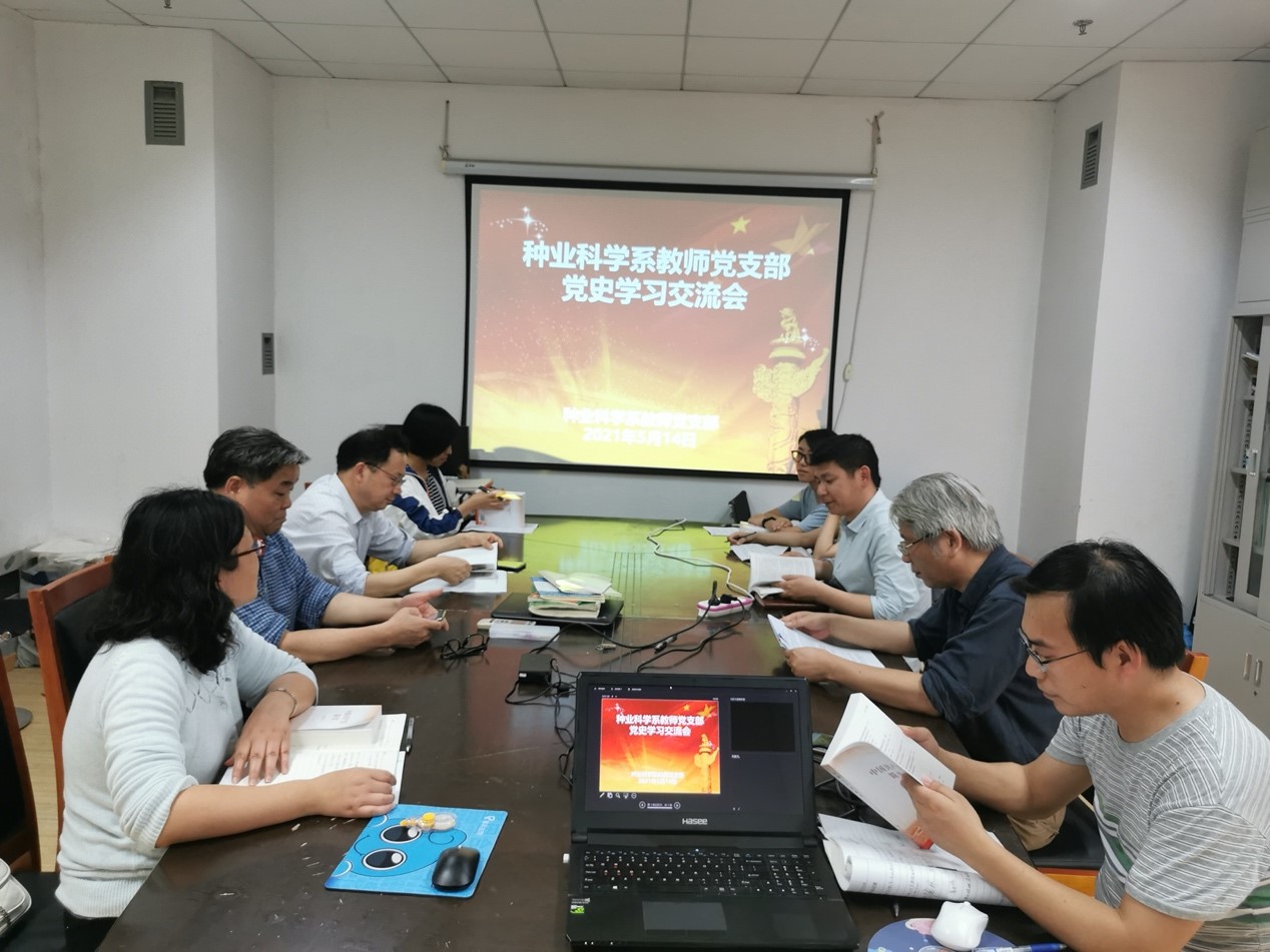 为了深入学习贯彻习近平总书记在党史学习教育动员大会上的重要讲话精神,原原本本学,种业科学系教师党支部于5月14日在理科楼D701会议室举行了党史学习交流会,共同学习《中国共产党简史》。会议由支部书记鲍永美主持,洪德林、刘康、钱虎君等党员参加本次活动。