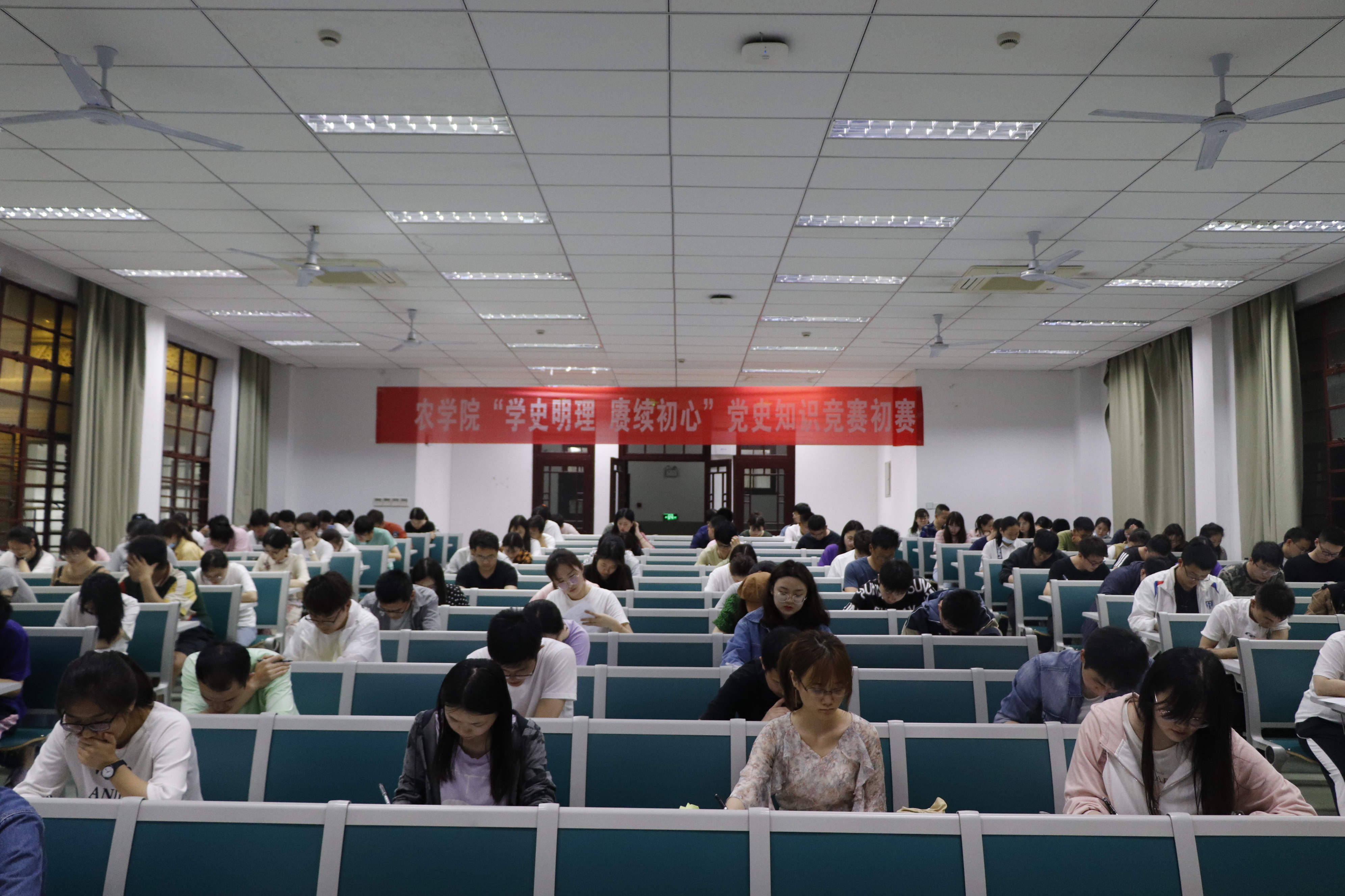 5月7-8日,教师党员集中进行线上答题,员工党员于5月8日晚上7点在主楼教室以笔试形式参与竞赛。本次初赛设置填空题、判断题、单选题、多选题四种题型,以中国共产党成立百年来的革命史、新中国史、改革开放史、社会主义发展史为主要内容,充分考察了参赛选手对党的百年峥嵘岁月、百年求索追寻的认识程度。