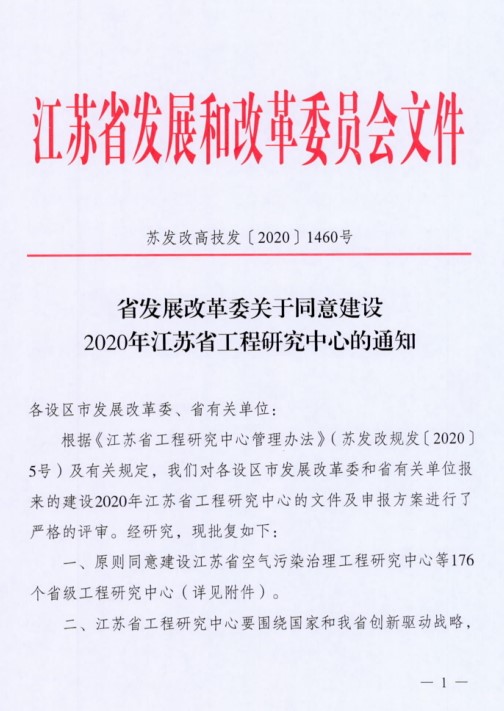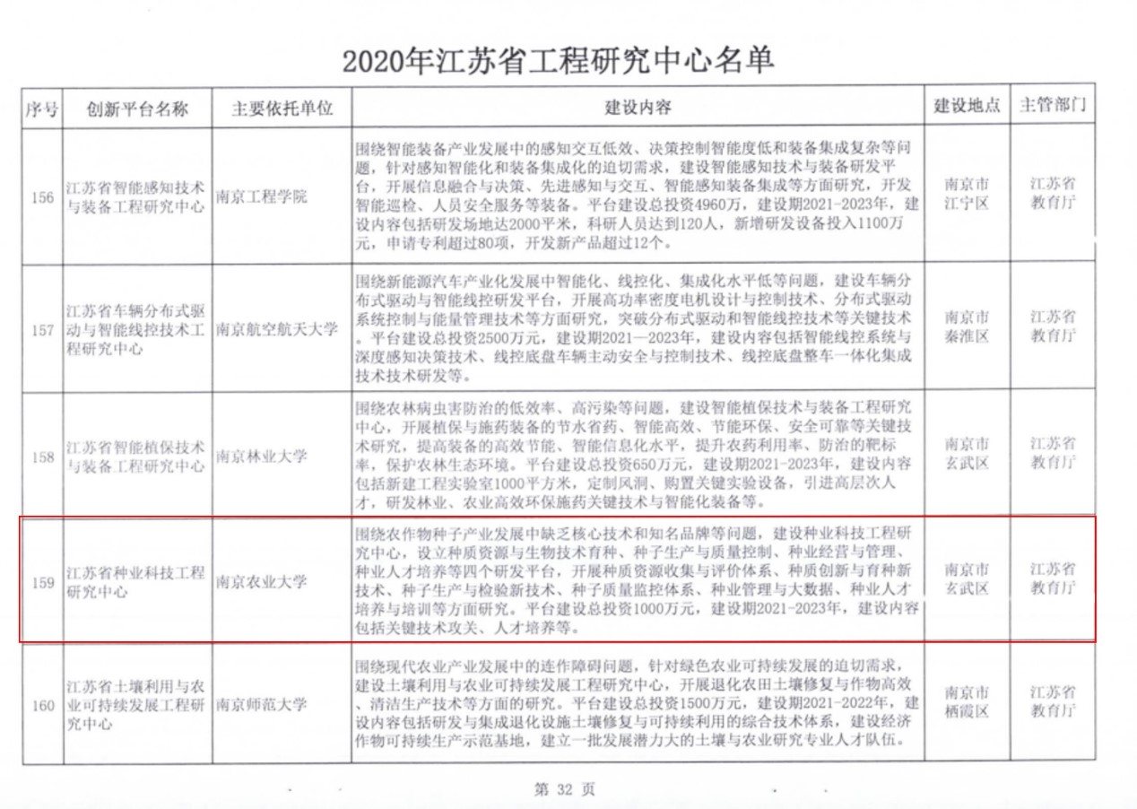 近日,江苏省发展和改革委员会公布了建设2020年江苏省工程研究中心的通知(苏发改高技发〔2020〕1460号),经学校推荐、第三方材料审核、专家评审、结果公示等程序,公司申报的“江苏省种业科技工程研究中心”获江苏省发改委批复立项建设。
