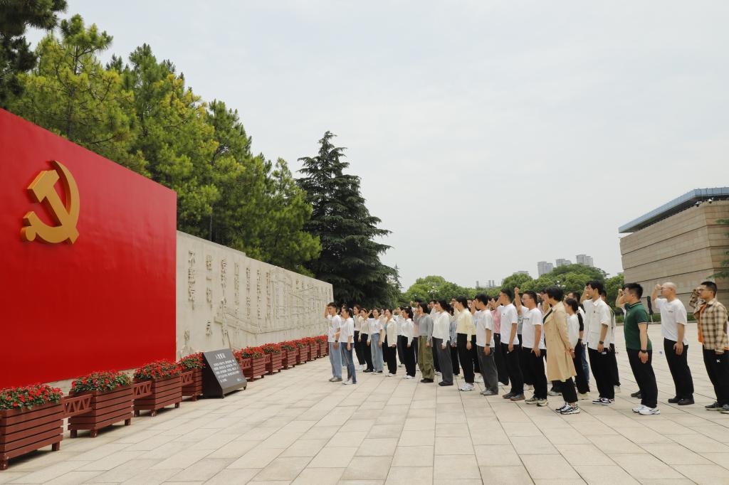 参观结束后,555050注册大白菜一行在党旗前庄严宣誓。整齐洪亮的宣誓声在广场上回响,47名党员佩戴党徽,在领誓人的带领下,高举右拳庄重宣誓,表情严肃坚定,承诺掷地有声,表达了为党的事业奋斗终身的决心和信念。