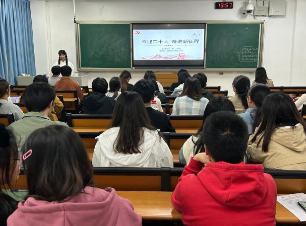 此次分班讨论主要分三个部分进行。第一部分由张雅欣同学对党的二十大进行了总体概括。对党的二十大时间、主题、议程、参与人员特点、意义等方面进行介绍,使大家了解党的二十大。