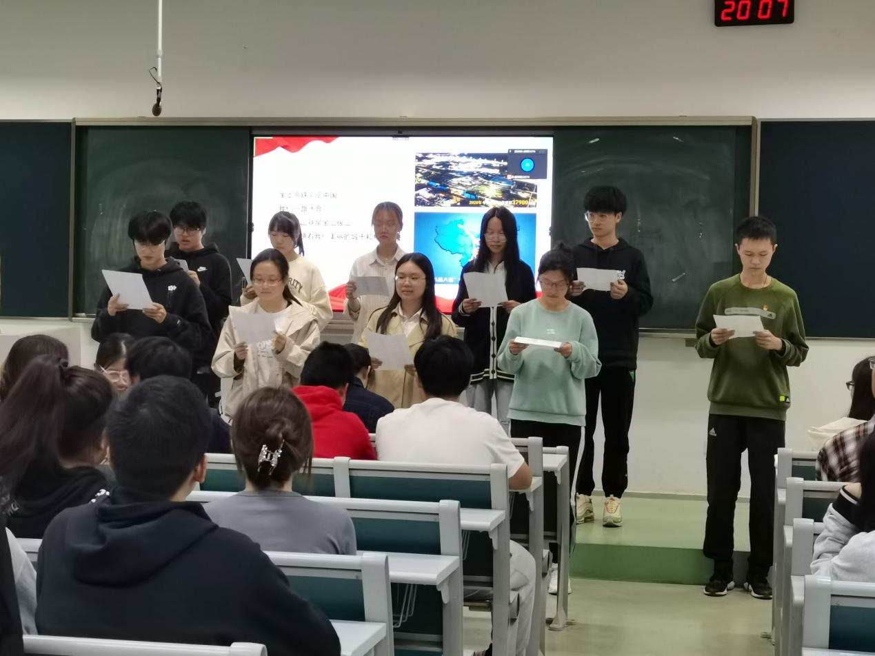第三部分“新征程 再出发” 由郭怡囡同学带我们聚焦二十大中一些精彩环节。她为我们详细阐述了在党的二十大广西代表团讨论中强调的“五个牢牢把握”;聚焦了解农业领域的二十大代表发言,让我们收获颇多;在民生方面,牢牢把握四个亮点,分别在乡村振兴、优化教育、科技创新、就业保障等方面深入学习;同时,学习及讨论了党对青年学子的期望。