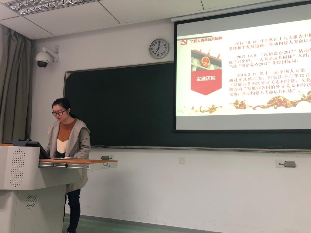 首先种子172班夏萌霜同学为大家介绍了“人类命运共同体”和“一带一路”的理念内涵和发展历程,人类命运共同体指在追求本国利益时兼顾他国合理关切,在谋求本国发展中促进各国共同发展。人类只有一个地球,各国共处一个世界,要倡导"人类命运共同体"意识。