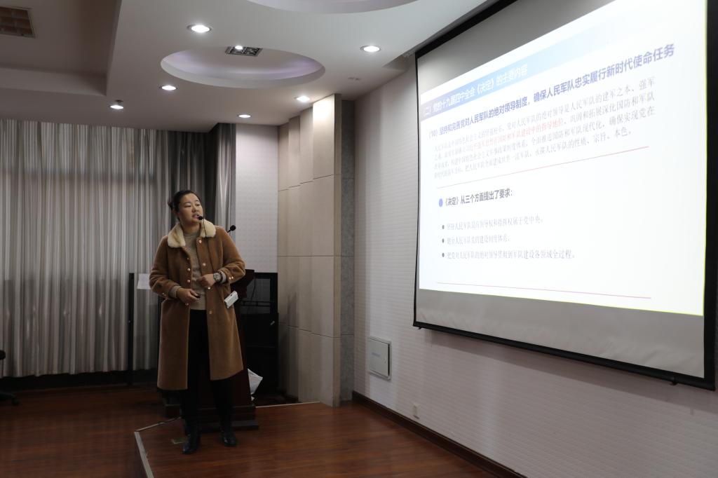 十九届四中全会是事关我国制度建设的一个重要会议,是实现“两个一百年”奋斗目标新中国成立七十周年历史交汇期举行的一个重要会议。孙琳老师从全会召开的背景、决议起草的过程、通过的重大决议、全会的主要内容等几个方面展开论述。