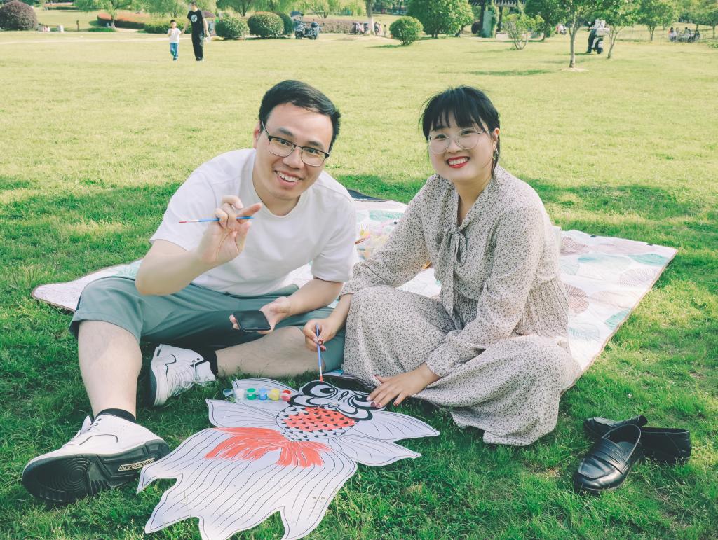 随后,大家或一人独绘或两三人合作绘画,画风各异但都全神贯注,用心描绘。随着风筝的陆续绘制完成,大家迫不及待放飞了风筝,天空都变得五彩斑斓起来。