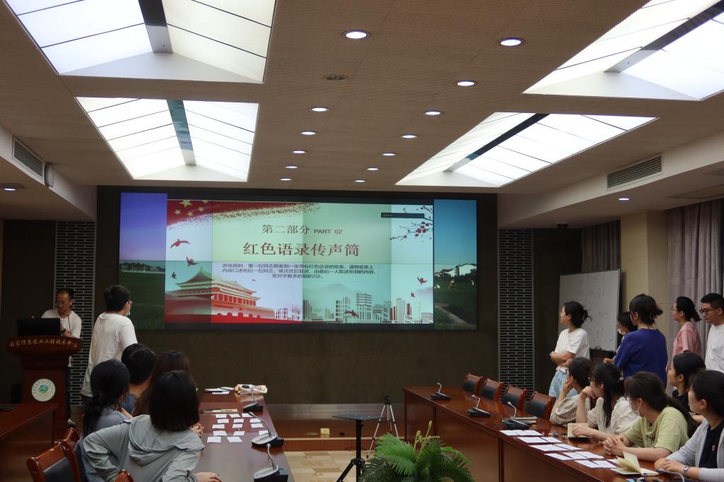 在党日活动的第二个环节中,支委会策划了三个红色主题互动游戏:红色记忆拼接、红色语录传声筒和听音识曲猜红歌。