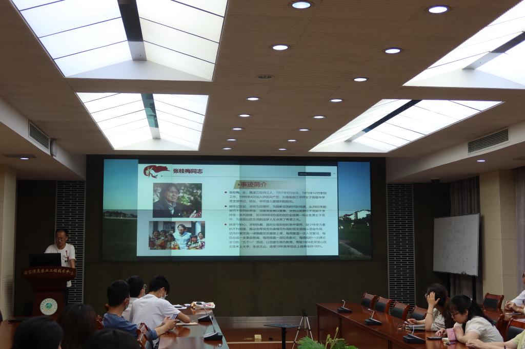 习近平总书记强调,要宣传那些秉持理想信念、保持崇高境界、坚守初心使命、敢于担当作为的先进典型,形成学习先进、争当先进的良好风尚。党支部书记吴文轩同志分享了卢永根、张桂梅、李夏三位优秀共产党员的先进事迹,与支部党员们一起学习共勉。
