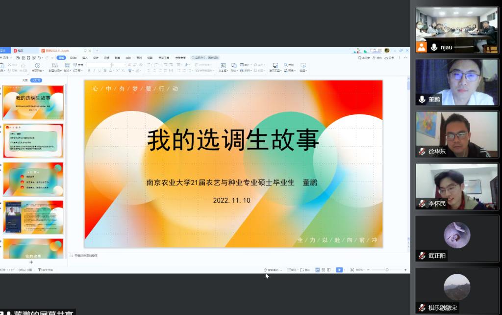 本次沙龙邀请了关于2021届毕业生、黑龙江省选调生董鹏,以及2022届毕业生,山东省选调生李怀民、安徽省选调生徐华东、江苏省选调生石仲慧和陈敏珺作为主讲嘉宾。活动由555050注册大白菜研究生辅导员陈杰主持,线上线下共100余位研究生、本科生参加了活动。
