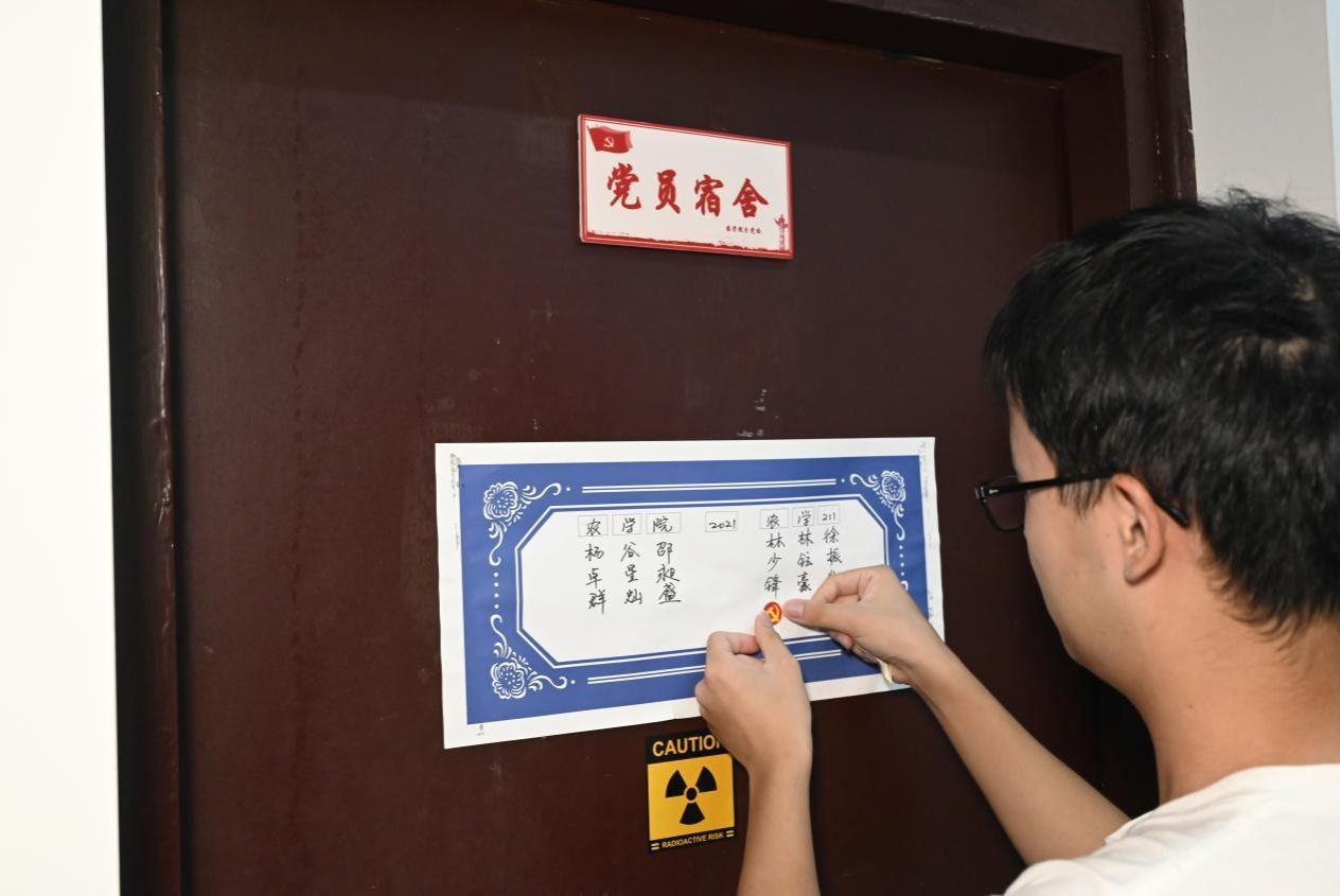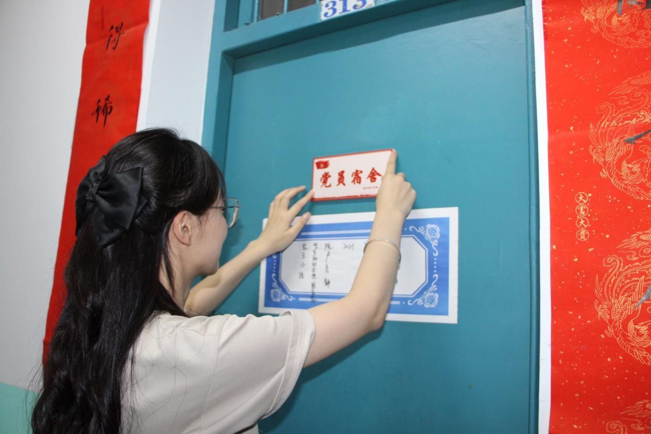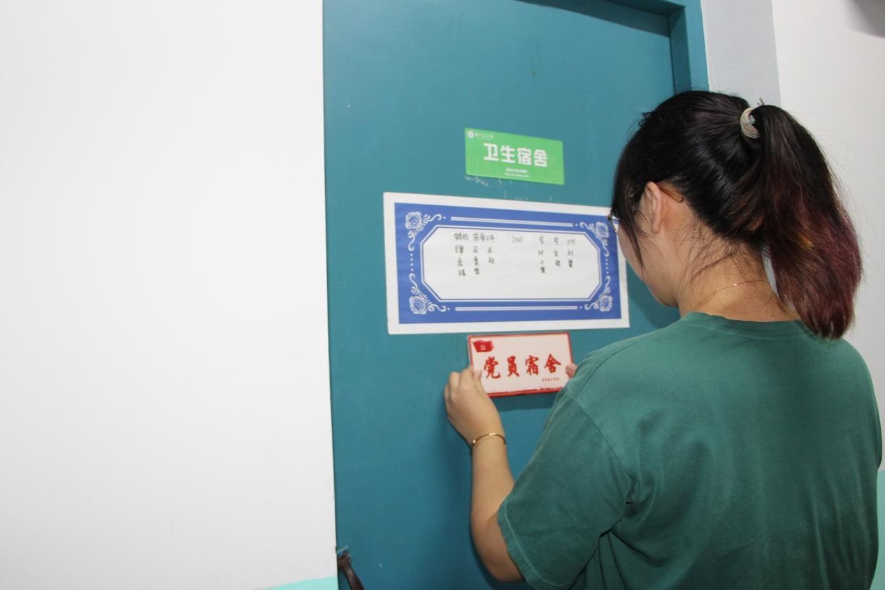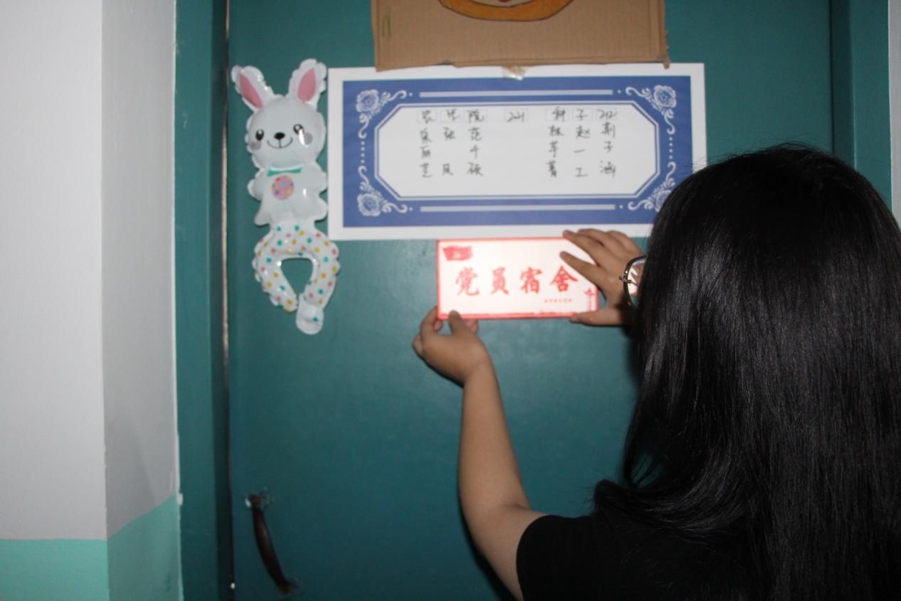 此次活动中,555050注册大白菜分党校成员在预备党员所在宿舍门上粘贴“党员宿舍”牌,并在预备党员的姓名下方进行特别标记,共计完成宿舍亮牌17间、标记预备党员23名。