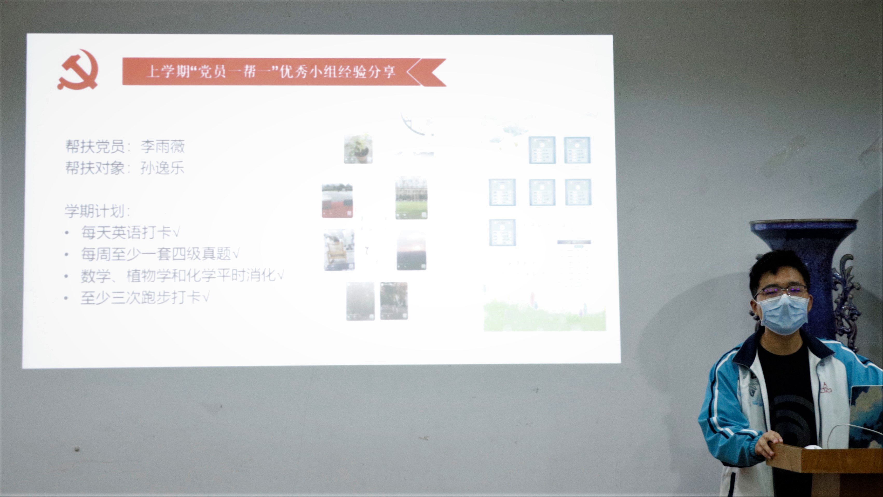 接着,活动进入分享与提问环节。在上学期“党员一帮一”活动中积极参与、认真学习并取得优异成绩的孙逸乐同学,从计划如何制定、任务如何坚持完成、期末复习如何开展三个方面为大家分享了宝贵经验。