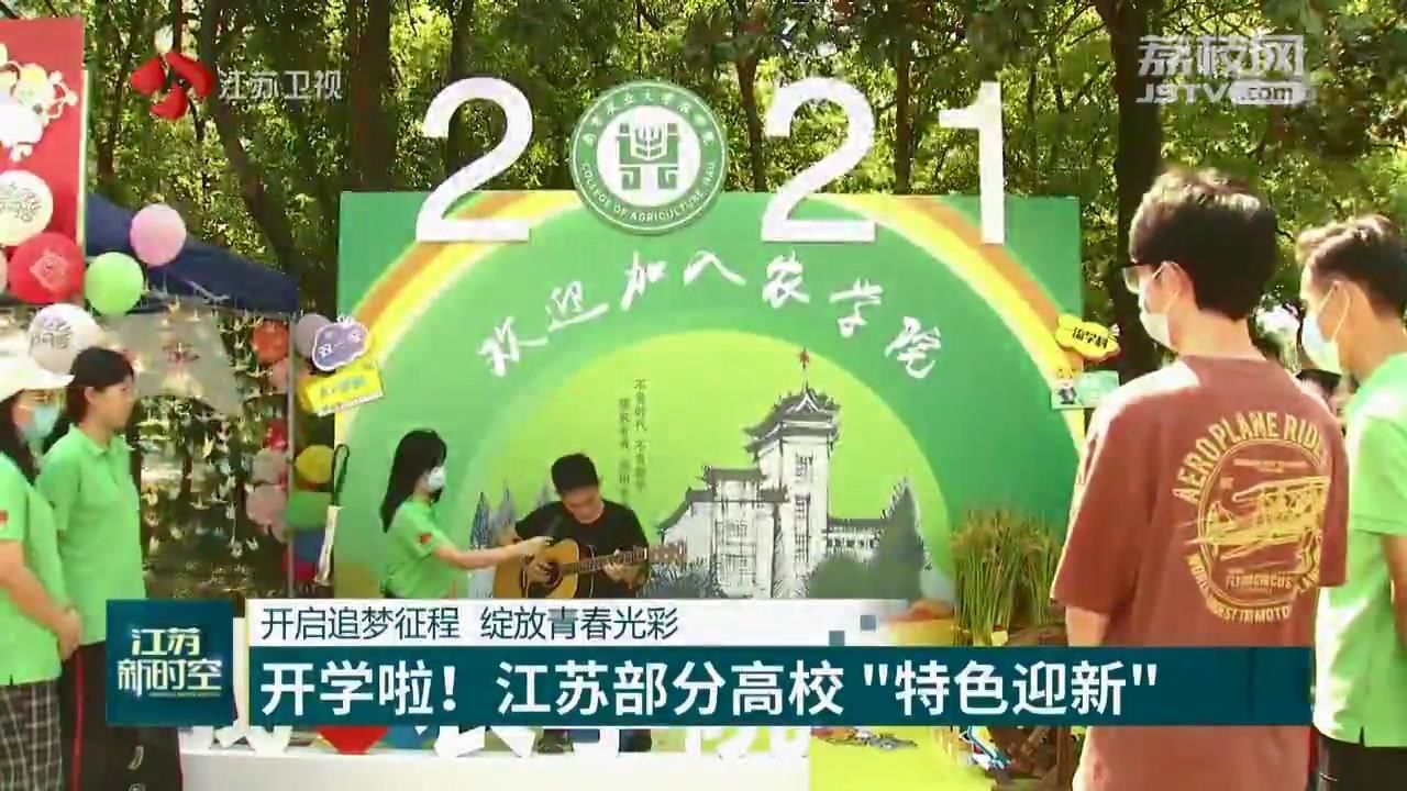 江苏台记者王尧说:“这里是注册白菜网址大全。为了迎接新生开学,学院们结合各自的专业特色搭建了10多个‘迎新帐篷’,推出了精彩纷呈的迎新活动。”
