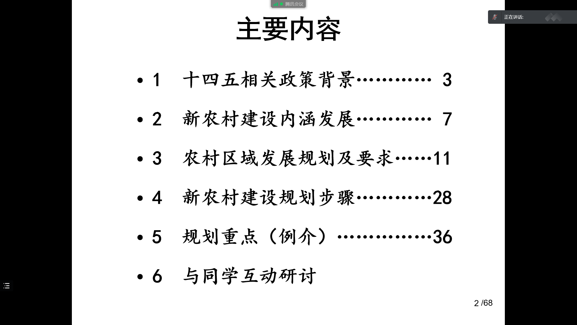 卞教授分别从“十四五”相关政策背景、新农村建设内涵发展、农村区域发展规划及要求、新农村建设规划步骤、规划重点五个方面全方位多角度展开了本次培训会的内容。