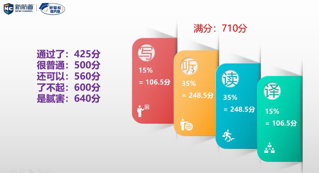 首先,陈老师就英语四级试卷的是否可以裸考和题目难度进行了讲解。随后,就听力没提干,阅读没时间,翻译没词汇,写作没逻辑进行了讲解,并对出错率高的题目进行重点强调、知识点总结以及答题技巧分享,大家认真记录。