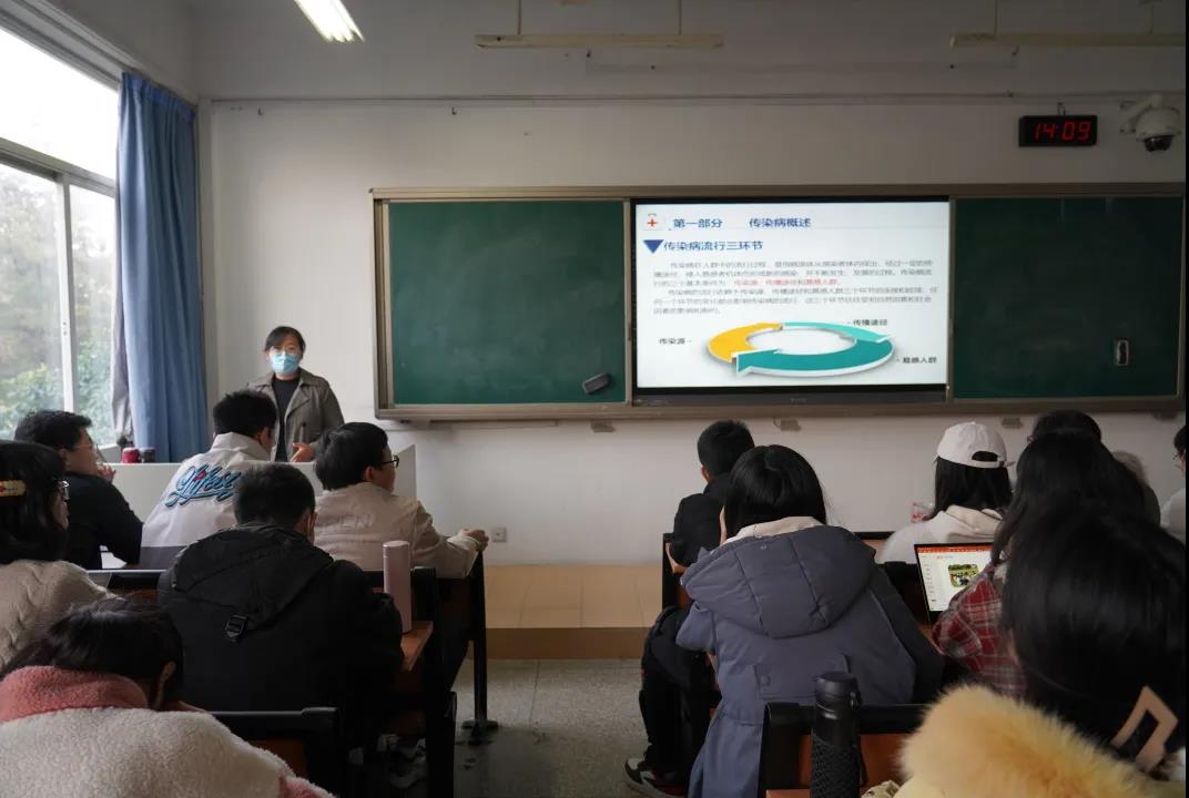 活动开始,许娜以12月8日南京市鼓楼区发现一例新冠肺炎阳性患者为例,给大家敲响了传染病防控问题的警钟,并叮嘱同学们:秋冬季节天气寒冷,气温变化大,是各种传染病的高发季节,且当前的新冠肺炎疫情防控形势依然严峻,需要我们进一步提高健康意识,学习传染病预防知识,增强自我防护。