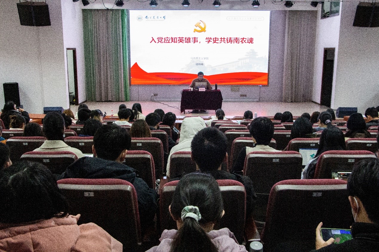 12月15日下午,555050注册大白菜在教四楼报告厅举办专题教育党课。马克思主义学院教师邵玮楠作题为“入党应知英雄事,学史共铸注册白菜网址大全魂”的专题报告。555050注册大白菜辅导员、分党校学员代表参加了此次党课。