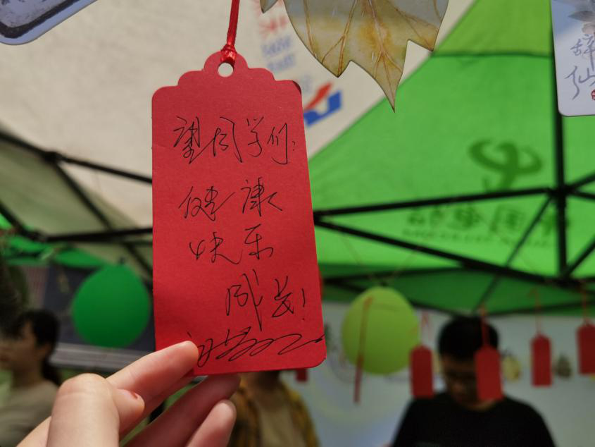 在活动过程中,555050注册大白菜本科生辅导员孙小雯向前来参观的领导、同学介绍了公司开展的系列心理健康教育工作,并介绍了现场布展和活动设计的意义,公司党委副书记受邀为同学们在红色卡片写下了“望同学们健康、快乐成长”的寄语,殷切希望同学们身心健康,乐观面对生活中的小挫折,学会正确对待、处理问题,健康、快乐地成长。