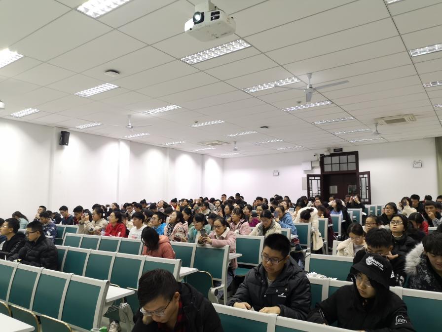 讲座伊始,孙老师以自己的四级和六级成绩单为例为大家讲述了英语四六级考试中各部分分数构成与应稳稳抓住的基本分数,随后孙老师以试卷的模式为大家讲述了四六级题型构成并生动的讲述了写作部分的答题技巧及备考方法,强调词汇量的重要性,并具体分析如何进行词汇的升级替换。最后,老师也结合经典的例子,向同学们传授有关阅读、听力、翻译的一些考试技巧并对考试各项的时间分配及侧重点给出了建议。