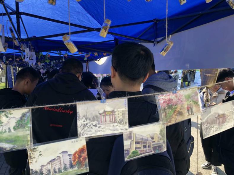 瓶子中装载的种子,用秸秆做成的“朴麦文化”产品,贴合人工智能专业的智能型设备展示等也吸引了同学们的目光。