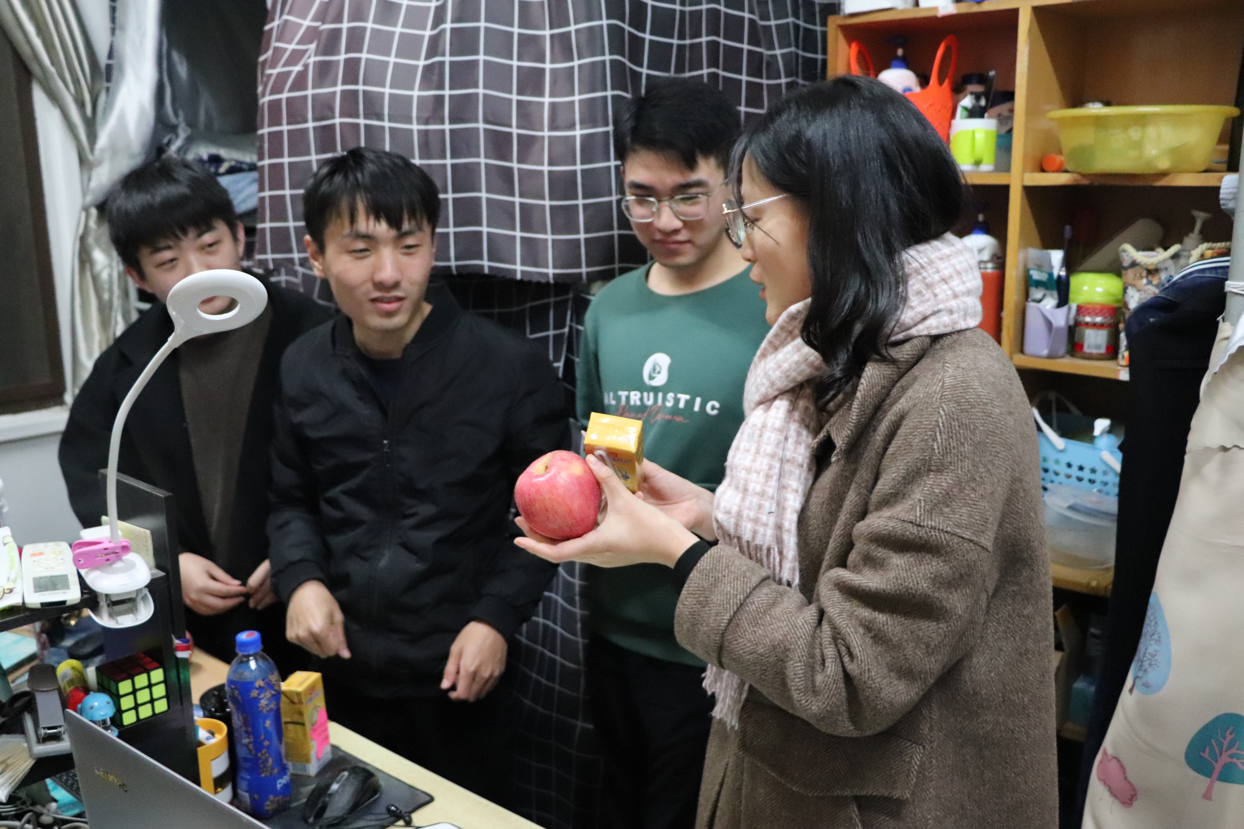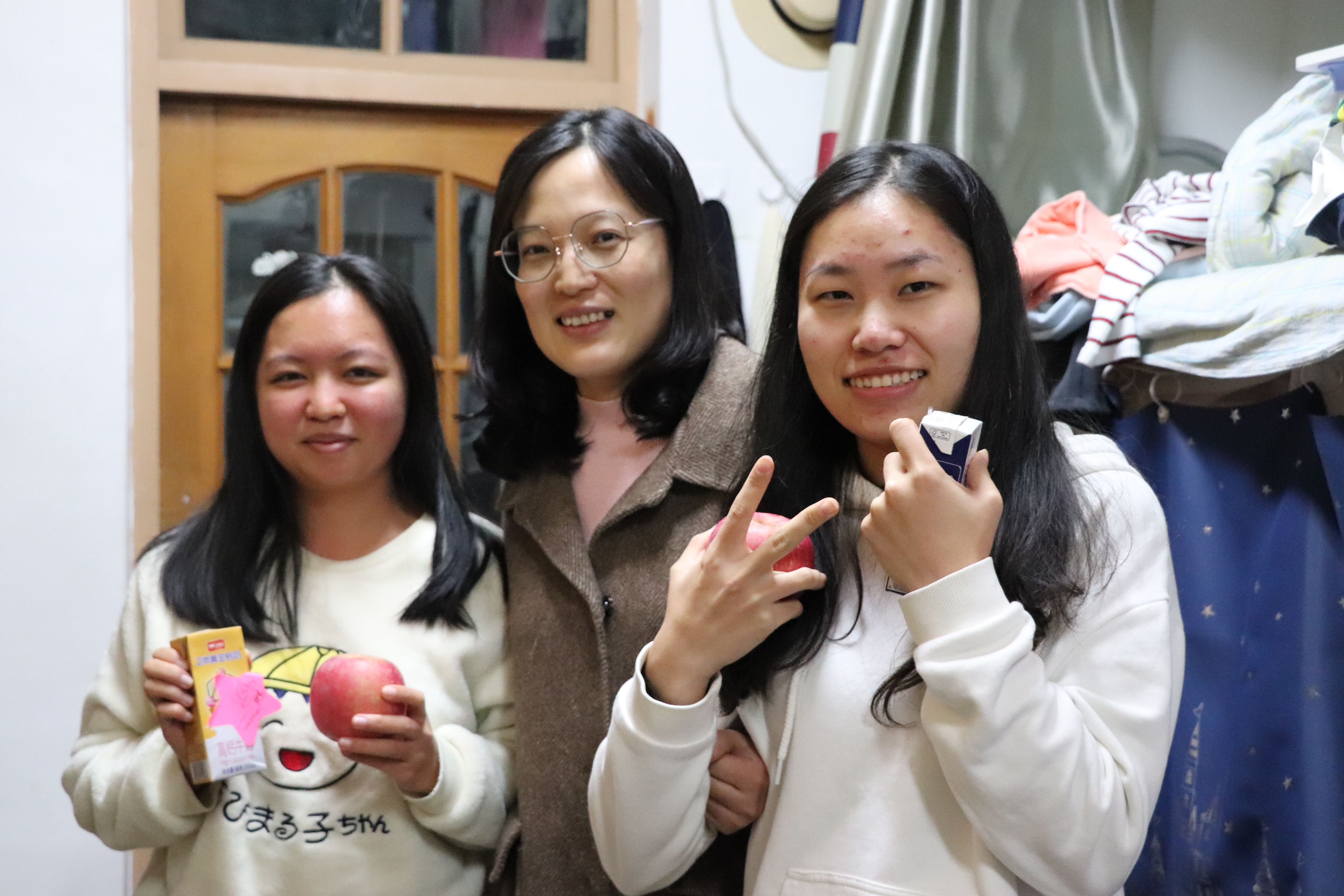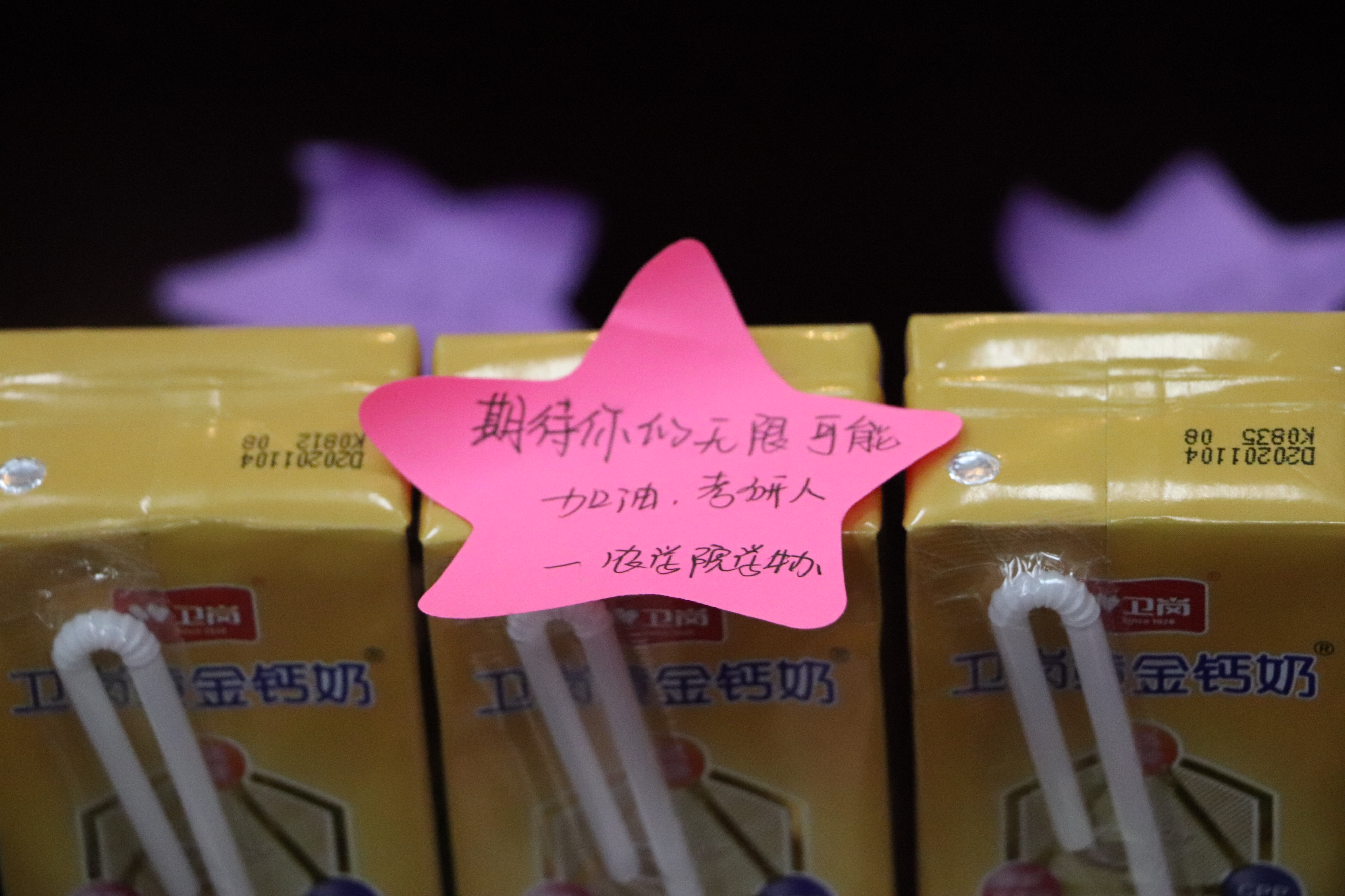 这一字一句的祝福语走进了考研学子的寝室,温暖进了考研学子的心里。满载祝福的星星贴纸装点了考研学子的寝室,也温暖了他们的心。礼包寓意期待你“牛气”满满,挟硕果归来,555050注册大白菜是你坚强的后盾……555050注册大白菜师生借借牛奶和苹果祝福考研学子都能取得佳绩。