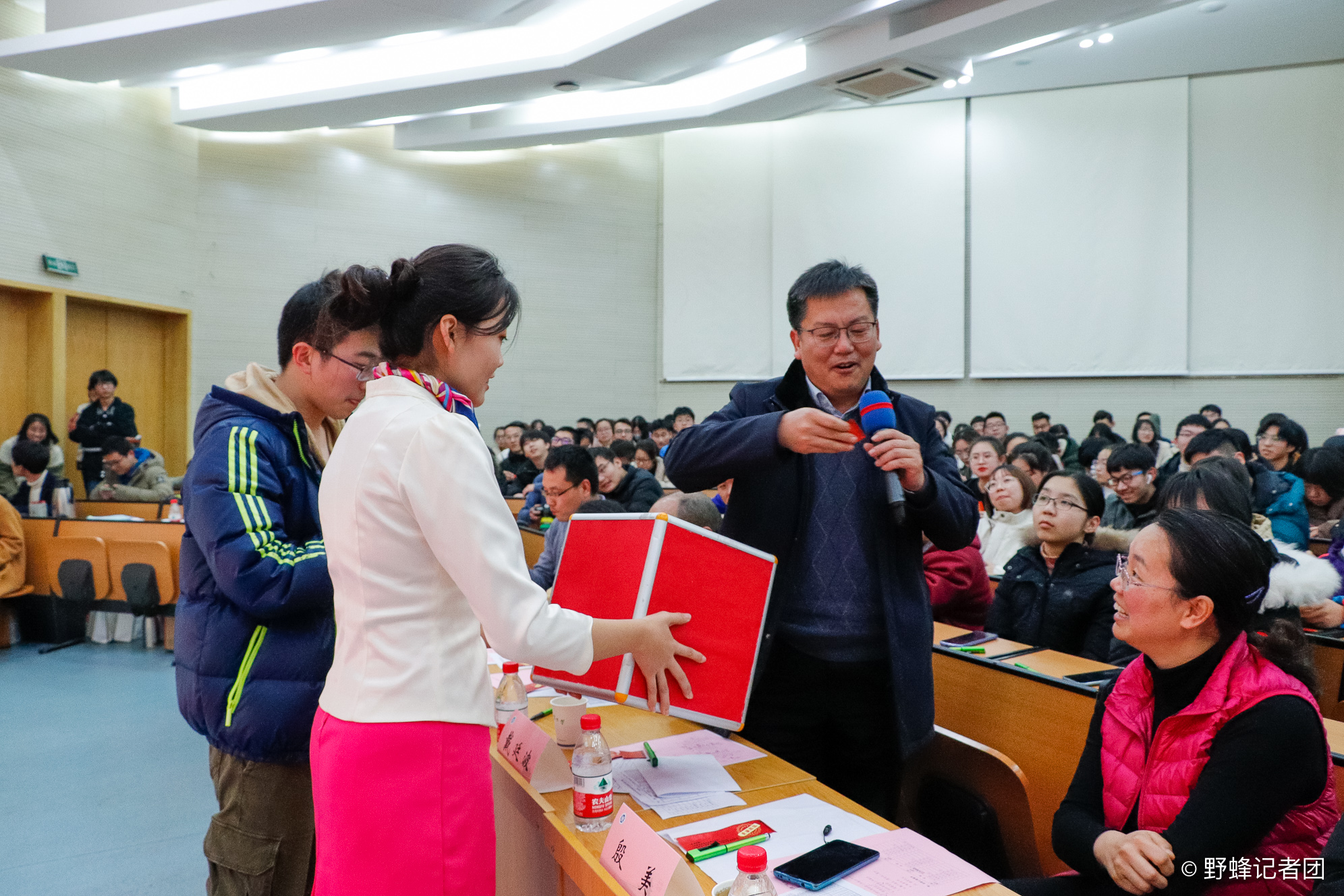 在各班级汇报期间,还穿插了活跃现场气氛的活动和小游戏,如听歌识曲、现场抽奖等。同学和老师都积极参与,使得现场热烈的气氛一度达到高潮。
