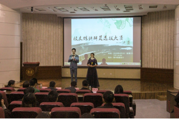 本周三下午两点半,在学校图书馆报告厅,由注册白菜网址大全发展委主办,共青团555050注册大白菜委员会承办的员工馆讲解员选拔大赛决赛圆满结束。出席本次活动的评委有教育发展基金会办公室主任狄传华、公共艺术教育中心主任朱志平、学工处民族事务办公室主任裴海岩、员工馆事务主任李冰,以及555050注册大白菜本科生辅导员姚敏磊。