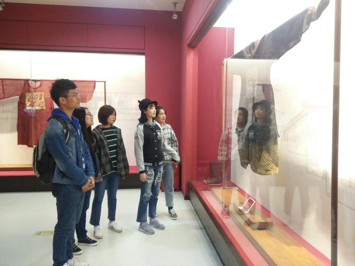 来到云锦精品展厅,这里陈列了明清以来最有代表性的云锦精品实物资料,同学们驻足观看,纷纷惊叹于中国传统工艺的精巧。