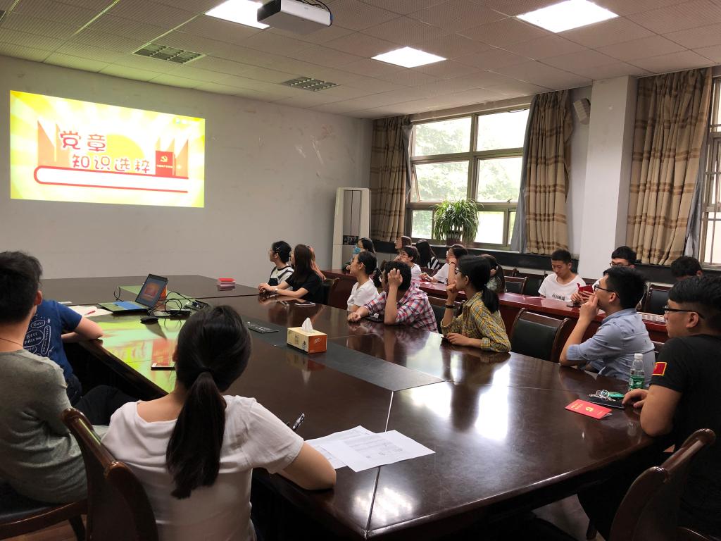 会议开始,支部书记郭凌凯同志总结了支部内部分党员同志基础知识薄弱的现状,动员大家主动学习党章党史、了解政策方针,鼓励支部内形成主动学习的良好氛围。之后观看了由江苏省委组织部制作的微课《党章知识选粹》,微课分别对党章的地位和作用、党的性质和宗旨、党的指导思想和纲领、党员的义务和权利、发展党员的工作、党籍和党龄的计算以及党内组织生活等知识点进行了提炼与讲解,以动画的形式方便大家理解与记忆。对党员以及预备党员、积极分子了解党章、学习党章都起到了较好的效果。