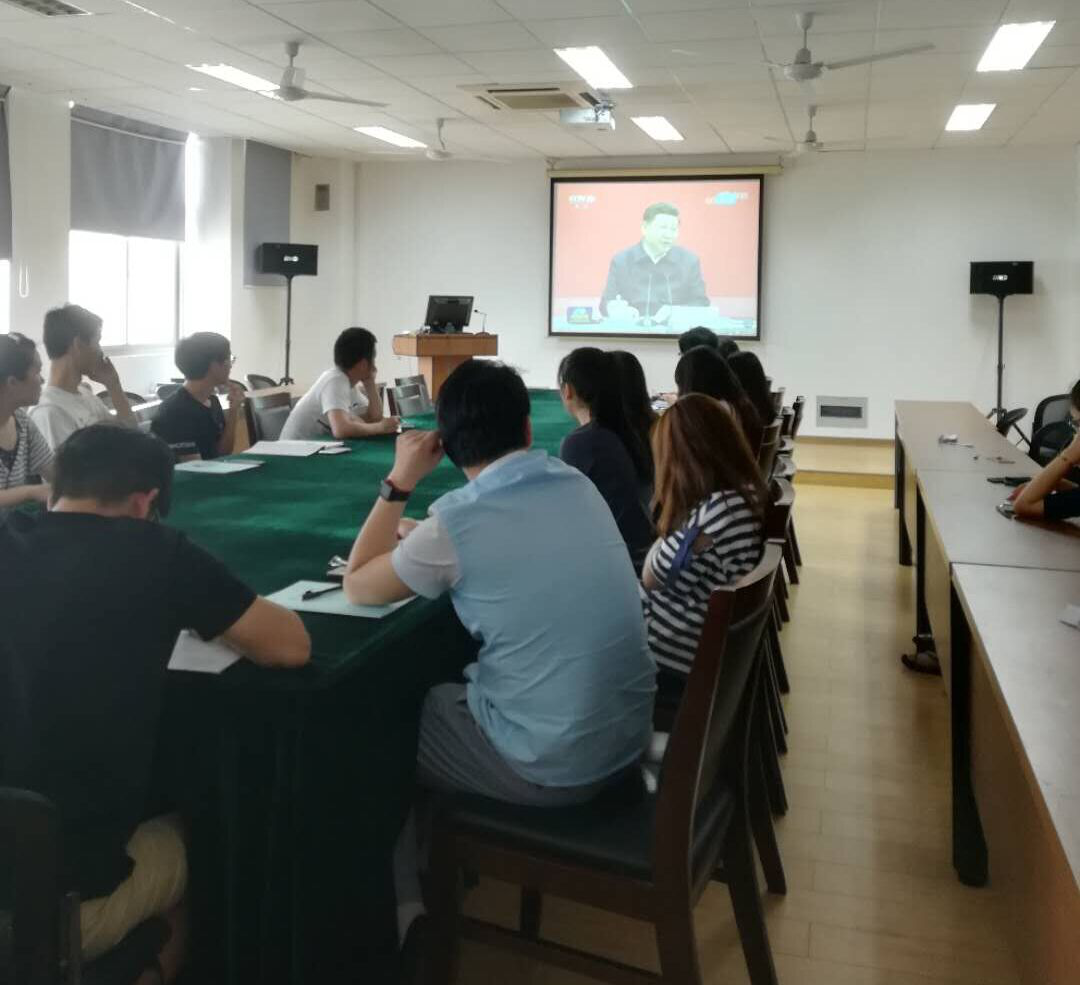 接下来进行了习近平总书记讲话的学习,首先观看习近平总书记在北大讲话的视频,借此归纳并向大家提出几点希望: 一是要爱国,忠于祖国,忠于人民;二是要励志,立鸿鹄志,做奋斗者;三是要求真,求真学问,练真本领;四是要力行,知行合一,做实干家。 并告诉大家新时代需要有情怀、眼界宽、干实事的新青年。之后大家进行了热烈的讨论,获益匪浅。