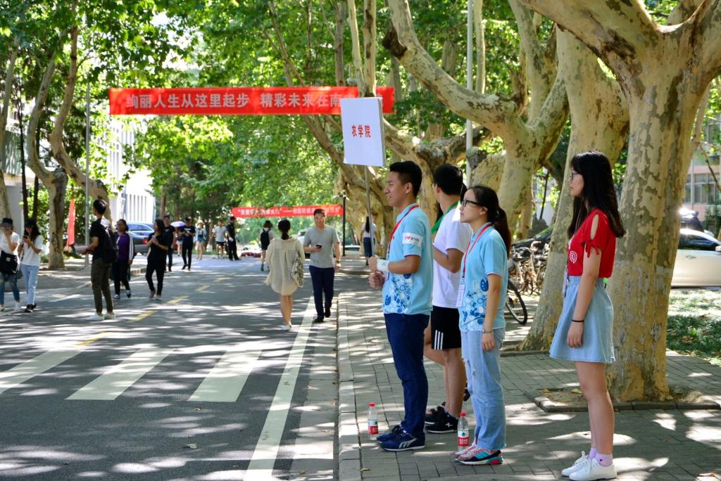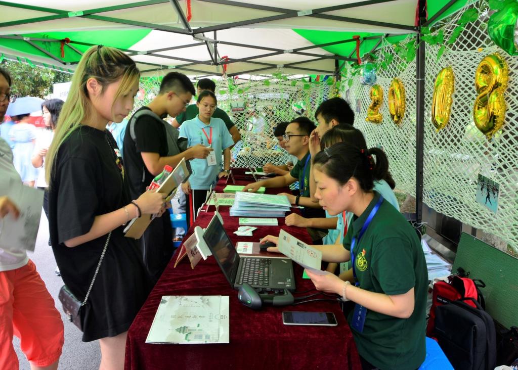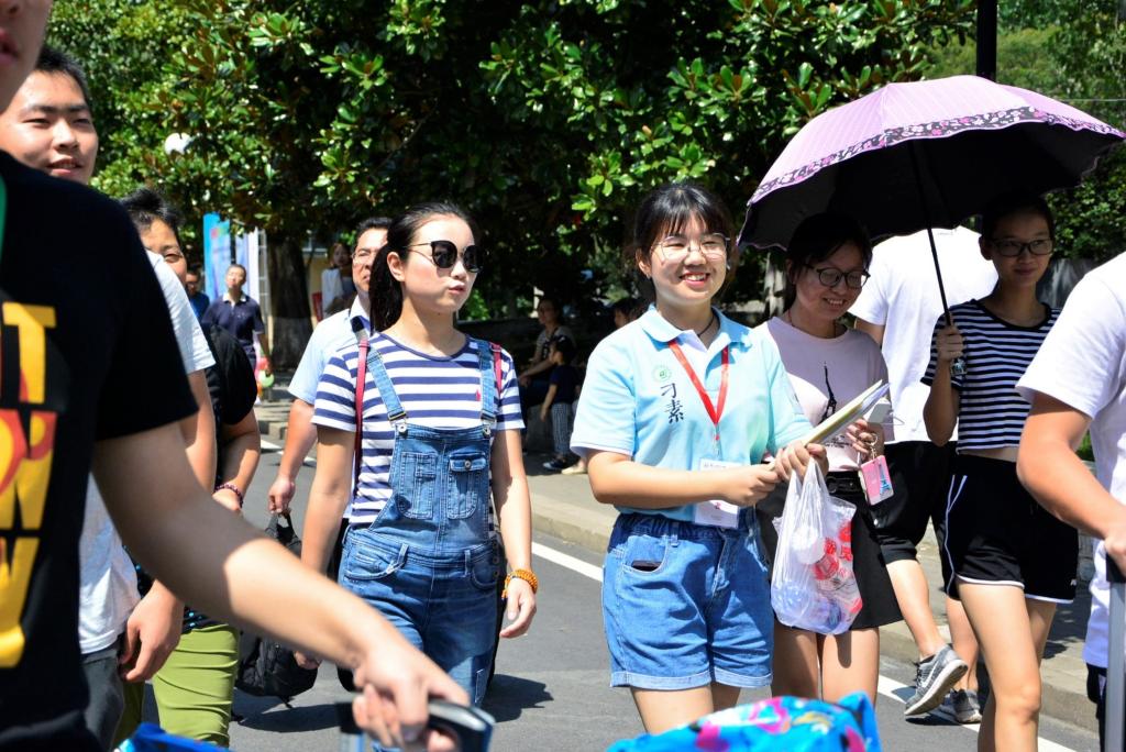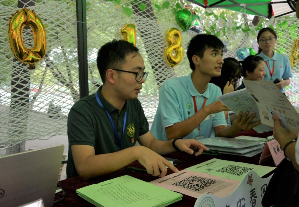 新生从踏进学校的那一刻起,就被555050注册大白菜的学长学姐们全程守护。555050注册大白菜今年在主楼、教四楼和樱花大道设立了三个迎新引导点,员工会成员带领着志愿者将新生和家长带至玉兰路的迎新点。