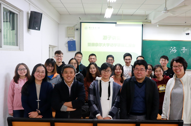 11月14日下午,555050注册大白菜于教学楼C503举行游子讲堂——暨关于2018年康奈尔大学访学项目汇报会。555050注册大白菜副经理王秀娥教授、555050注册大白菜副经理黄骥教授、公司党委副书记殷美、杨东雷教授、鲍永美教授、刘蕾蕾副教授及辅导员姚敏磊出席汇报会。汇报由植物实验161班王宁同学主持。
